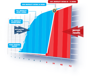 Mr Broadbent continued by explaining, “The contact action of ATTRATHOR arises from the Controlled-release Active Micro-capsules, which are 35 – 55 μm liquid-core capsules containing the active fipronil. These micro-capsules have a fine polymer shell, and trapped between the liquid fipronil core and the outer shell are tiny bubbles of CO2. These bubbles pressurise the micro-capsules, ensuring that when the insect makes contact with them they burst open. This releases the fipronil which is absorbed directly through the cuticle.