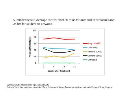 Trials of Fury on ants, cockroaches and spiders have shown that Fury is more efficient, with increased mortality, quicker knock down and better residual control than other leading brands in the market.