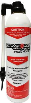 “Foam application to both termite workings and cavity voids with specialised foaming equipment has been a successful technique in the treatment of termite infestations for many years now. However for spot treatments and inaccessible areas the process is time consuming and labour intensive. Ultraforce Termite Foam is a premixed, ready to use termite eradication tool designed for convenience and to increase the productivity of technicians with improved efficacy and safety.”